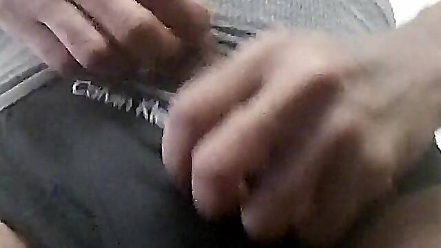 Tgirl snivels and squeals as she gets herself off with massager in underpants