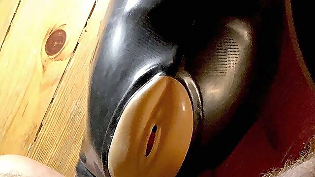 Latex Mask Filled with Sperm From His Cock!