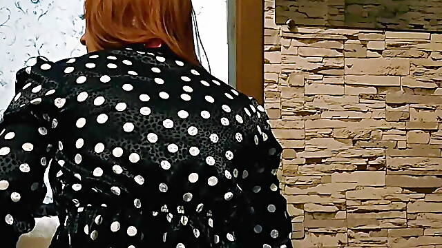 Red-haired sissy Sonechka was almost caught on the staircase during anal self-pleasure