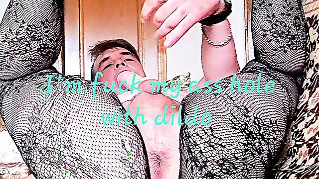 Ukrainian, Huge dildo, Crossdresser, Pantyhose
