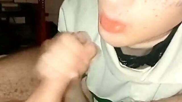 1st date with a charming French trans hotty, that babe sucks me off and swallows in the kitchen.