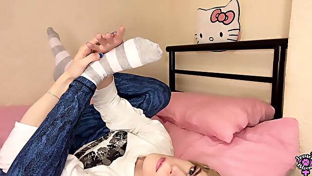 Yoga, Nylon, haciendo una paja, medias