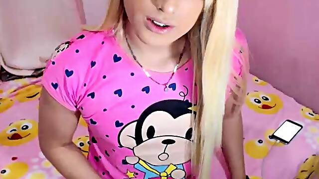 Blonde Transsexual’s Huge Pecker Explodes in Filthy Cam Cumshow! - sexcamts.com