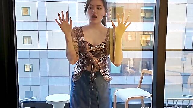 Naughty tgirl ENJOYS Stroking for the Neighbors (open window voyeur)