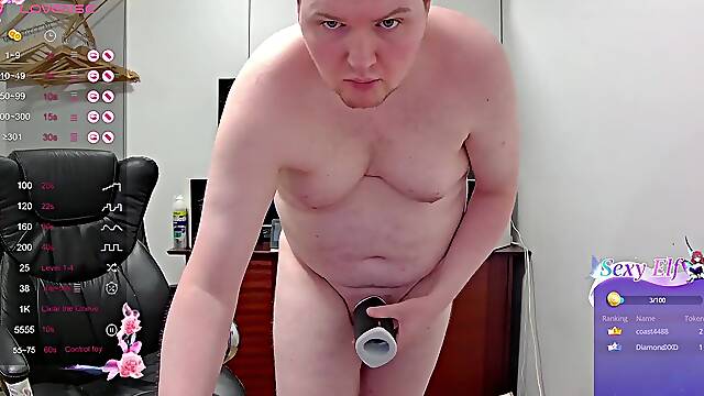 Starts jerking off right out of the shower, then turns on vibrator while interacting with chat