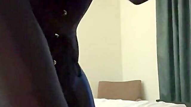 Gothic femboy in gloves and pantyhose barebacked and creamed