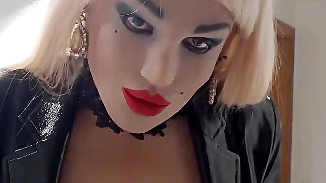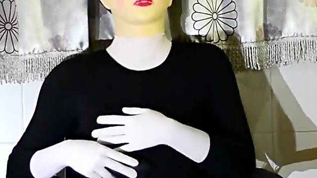 Female Mask Sissy Doll Enjoys Her Satin Suit