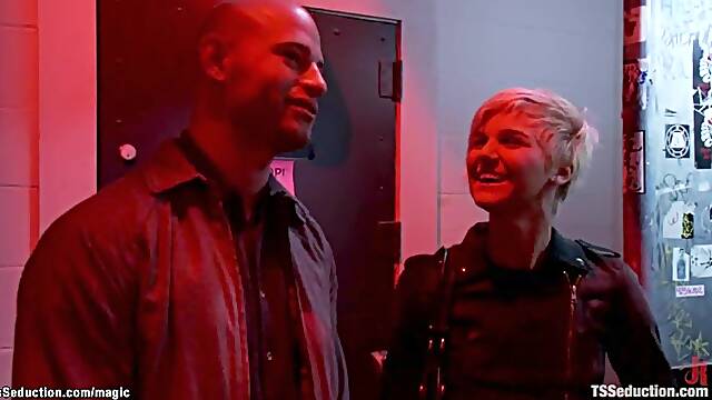 Blonde t-girl in threesome with lusty couple