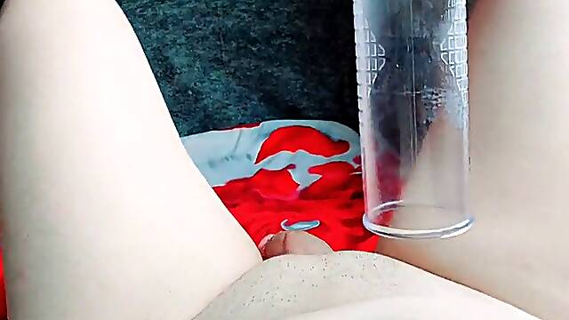 Femboy Gets Supah Rigid with Homemade Pump for First-Ever Time