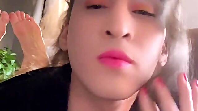 Beautiful shemale Luke Longly in lingerie and thong pov.