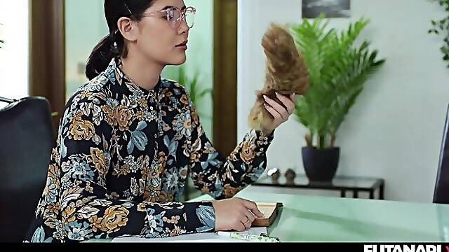CG futanari boss banging a shemale hentai hottie on a job interview