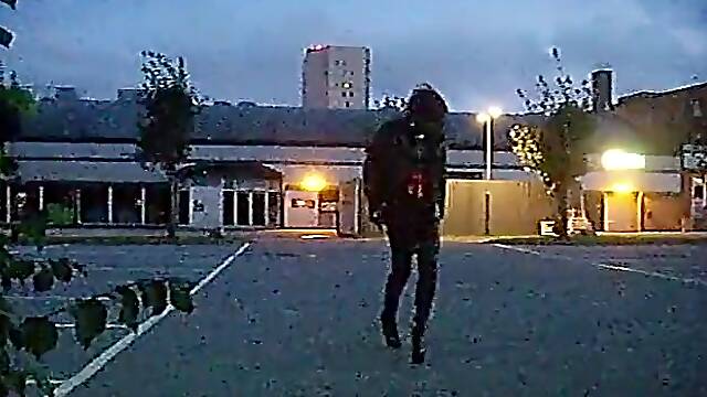 Transsexual twists her butt in front of the window, seducing random passers-by and walks in the entrance clothed in babes's garments
