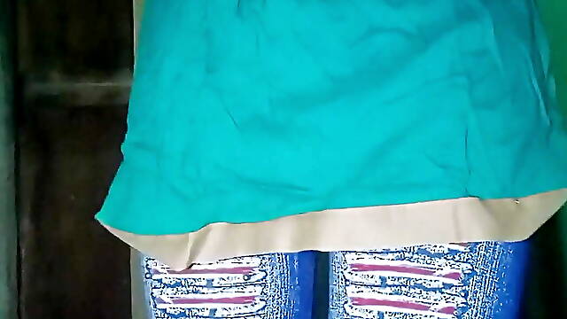 Indian Gay Crossdresser Gaurisissy in Blue Salwar Suit Pressing His Boobs and Fingering in His Ass