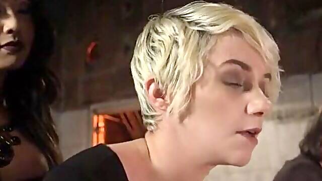 2 Studs See as Four Shemales Take Turns on a Sexy Wench