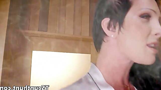 Stunning Latina shemale hottie bangs a dude in the sauna