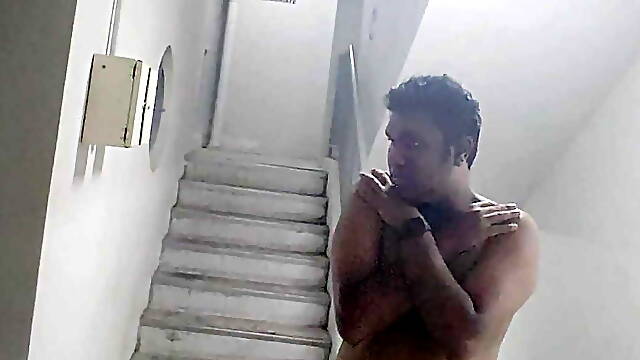 Puta travesti caliente desnuda en publico con butt-plug en el booty tacones altos y pene caliente disfruta