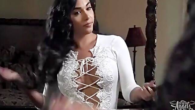 Hardcore with a sweet milf TS in lingerie