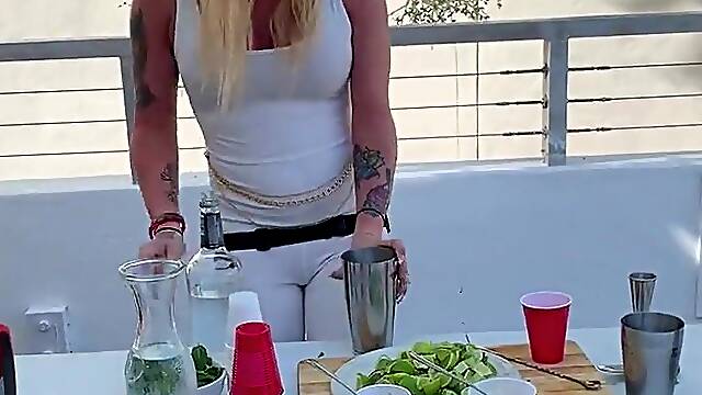Tgirl gets Fucked in Anal while talking to a barmaid