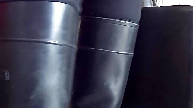 Crossdresser Rubber Play, Pissing, Drinking, Wanking, And Blowing Up