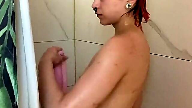 Cute Trans gal masturbated previous to getting a shower
