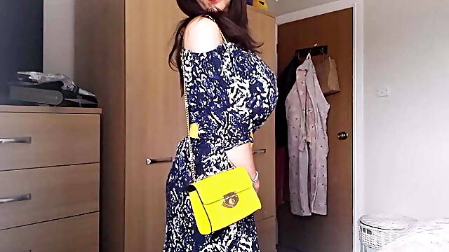 Watch this hot brunette with massive tits strip down & pleasure herself with a dildo