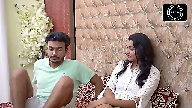 Frisky teen brunette is sucking her married neighbor's dick and riding it in a hotel room