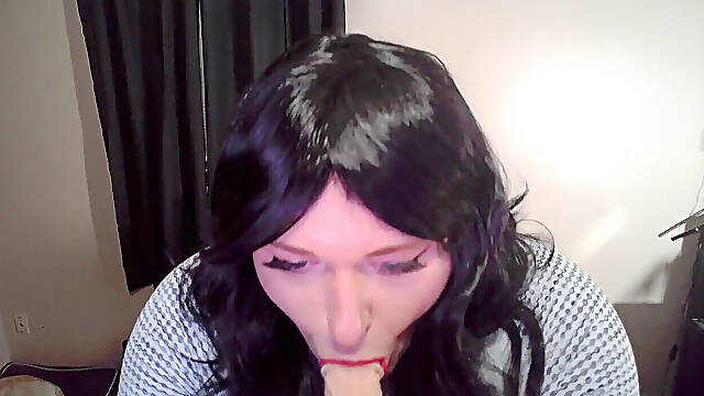 CD practising her fellatio skills on a fake penis.